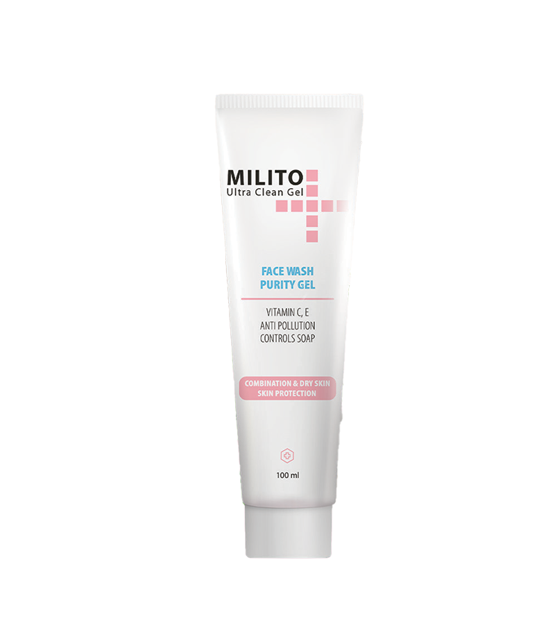 ژل شستشو صورت میلیتو مخصوص پوست خشک و حساس فاقد مواد شوینده صابونی و سولفاتهای قوی است و همین ویژگی باعث میشود بدون آسیب به سد رطوبتی پوست، آلودگیها، ذرات محیطی، چربیهای اضافی و سبوم را پاک کند.